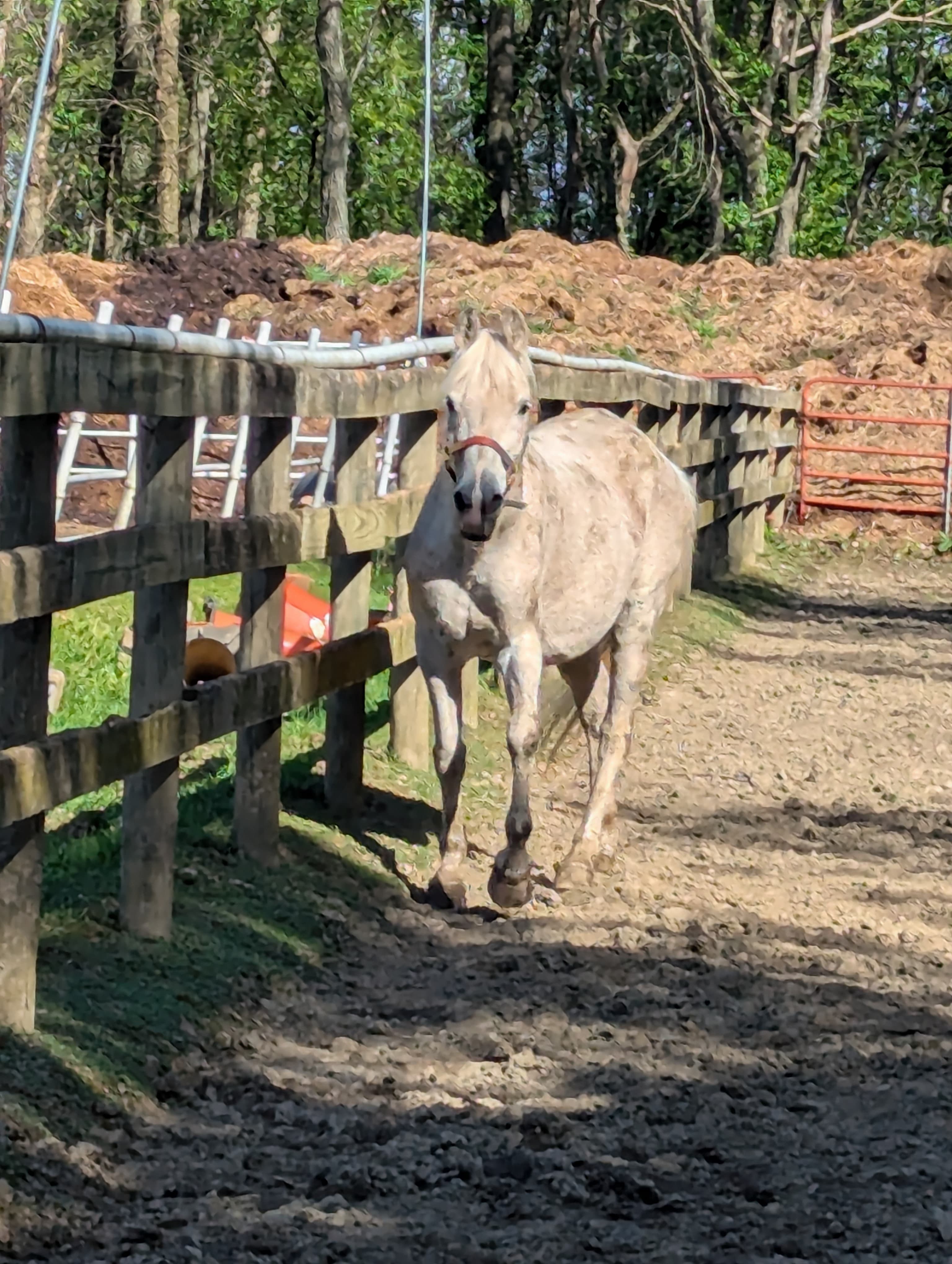 I am in contact with her owner without anyone playing messenge for us now, so care and stuff will be much easier to coordinate. I found out Sandy is 26, not 30. I was also told that I can ride her any time as long as she’s in the condition for it. She’s not close to being in riding shape and never may be in riding shape, but that doesn’t matter to me. I don’t need to ride her. I just want her to be happy and healthy and have the best old age she can.