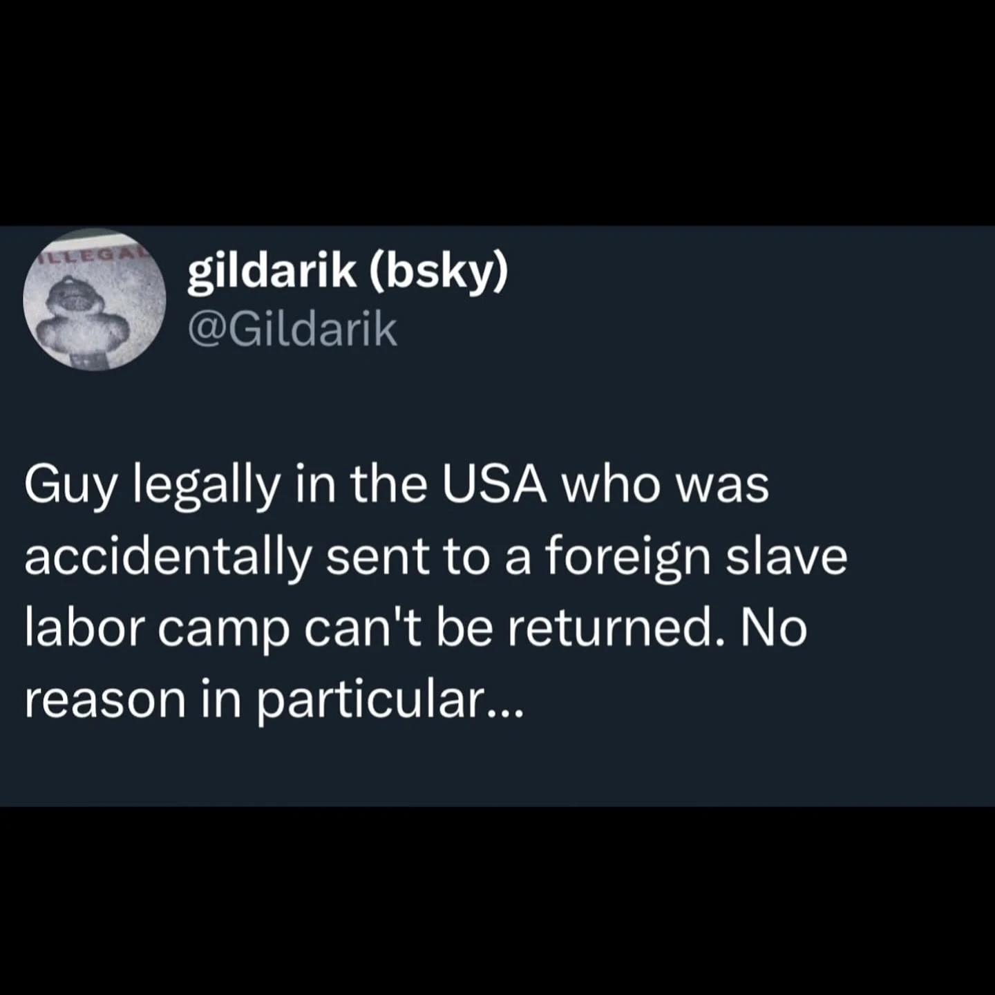 But that doesn’t matter, because on March 15th Abrego Garcia was deported without ever having been proven to be a member of MS-13. No presumption of innocence, no charges filed, no access to a lawyer, no chance to ever argue his innocence in a court of law. You know, that whole “due process” thing that we used to care about.