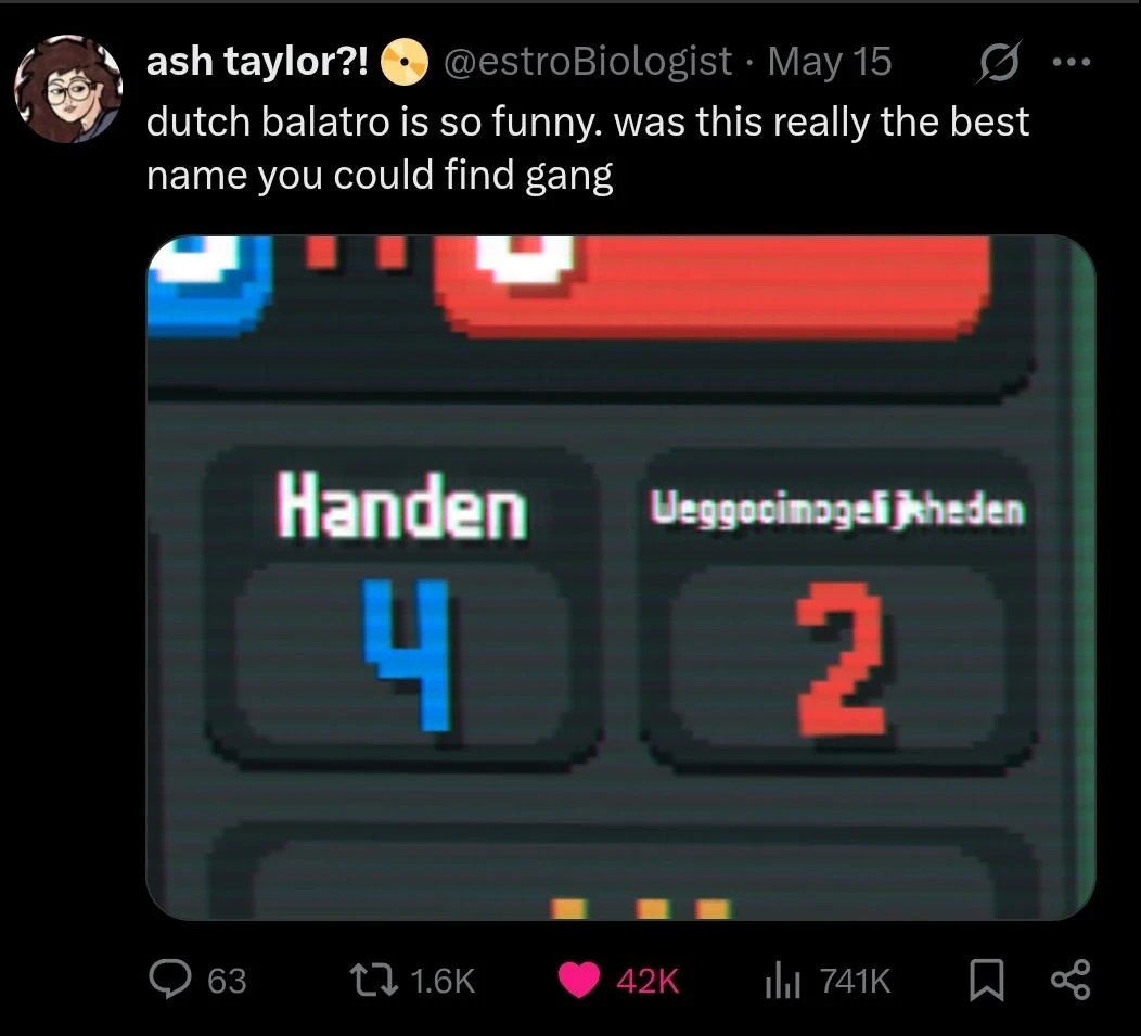 arrow-up1133arrow-down1imageHow does one even pronounce it?SagXD@ani.socialM to [MIGRATED TO DIFFERENT INSTANCE CHECK PIN POST] Balatro@lemm.ee · 8 months agomessage-square17linkfedilink
