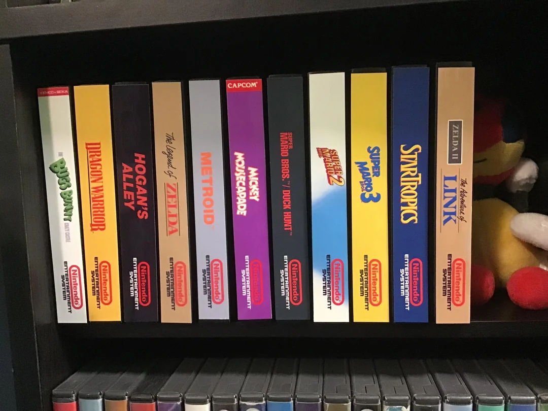 I got some aftermarket dust sleeves for the cartridges and designed theses end labels for them. All I had to do was print them out on some good quality paper and stick them on the spines with some double-sided mounting tape. They’re not identical to the original boxes for the games, but I tried to design them with a similar visual identity to the retail boxes. I’m quite happy with how these turned out and they seem to be holding up pretty well.