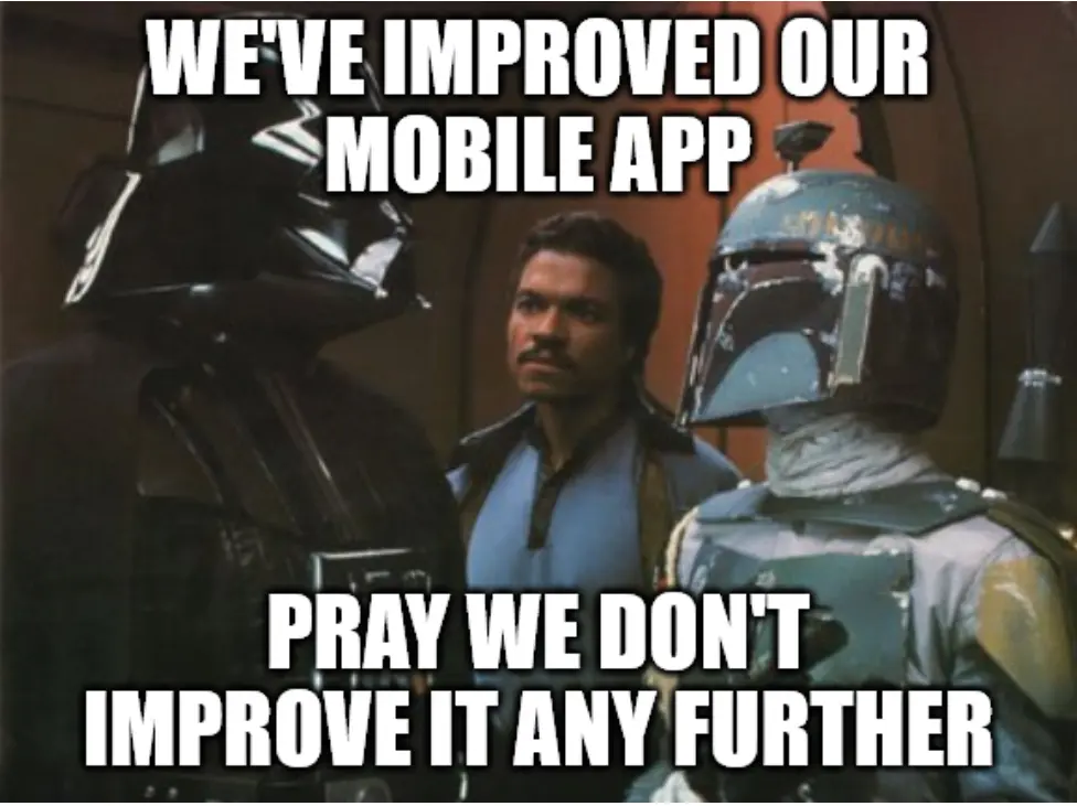 We’ve improved our mobile app. Now you have to register with no benefits for you whatsoever.
