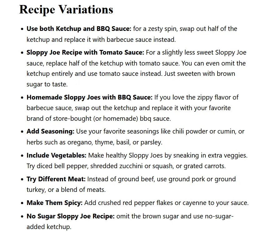 - Sloppy Joe Recipe with Tomato Sauce: For a slightly less sweet Sloppy Joe sauce, replace half of the ketchup with tomato sauce. You can even omit the ketchup entirely and use tomato sauce instead. Just sweeten with brown sugar to taste.