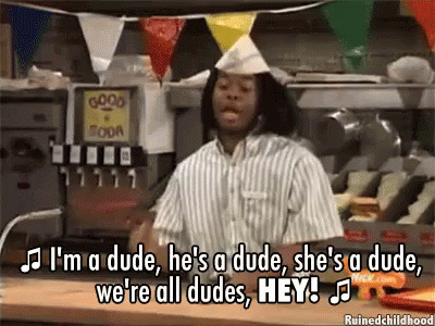 In the immortal words of Kel Mitchell, “I’m a dude, he’s a dude, she’s a dude, we’re all just dudes”. (Good Burger, 1997)