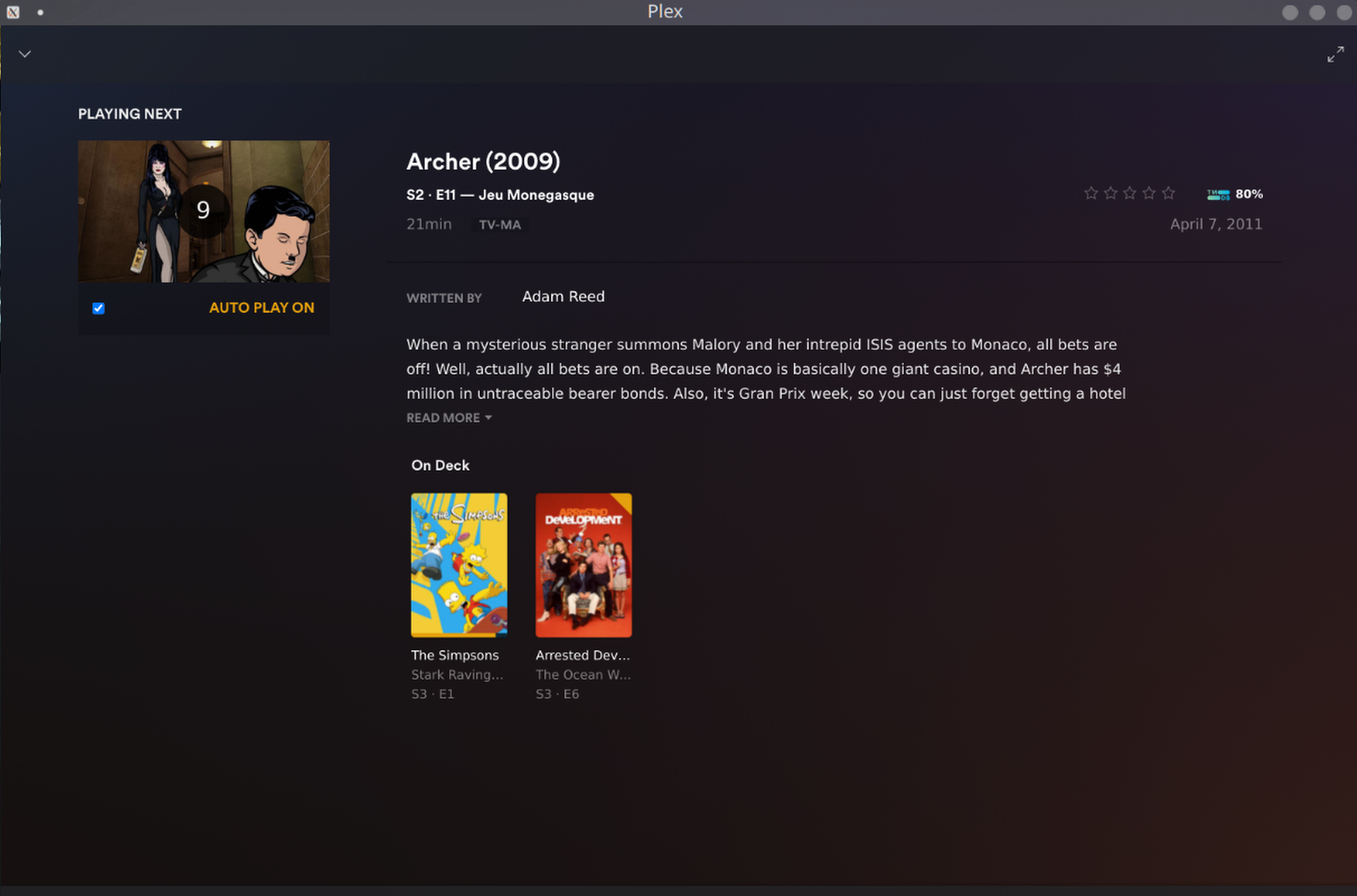 But Plex is worse for other reasons, on my LG TV. It’s painfully slow and doesn’t play the correct audio track that I select.